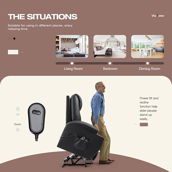 - Power Lift Assistance: Power lift and recline assist system, help the elder stand up easily. The foot rest and seat back can be adjusted at multiple angles by remote control, smoothly adjusting the position you want when watch TV, read books or take a nap.