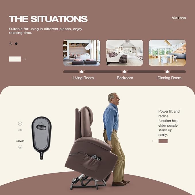 - Power Lift Assistance: Power lift and recline assist system, help the elder stand up easily. The foot rest and seat back can be adjusted at multiple angles by remote control, smoothly adjusting the position you want when watch TV, read books or take a nap.