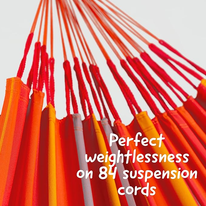 - OPTIMAL COMFORT, LASTING DURABILITY: Indulge in supreme comfort with 84 suspension cords that ensure optimal weight distribution. Crafted for durability, our hammock with stand for outside use guarantees years of leisure without compromising on comfort.
