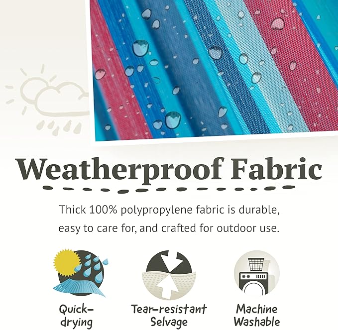 - ALL-WEATHER RELAXATION: Specially designed for outdoor bliss, our hammock features weatherproof fabric, making it easy to maintain, quick-drying, and resilient against the elements – ensuring carefree relaxation year-round.