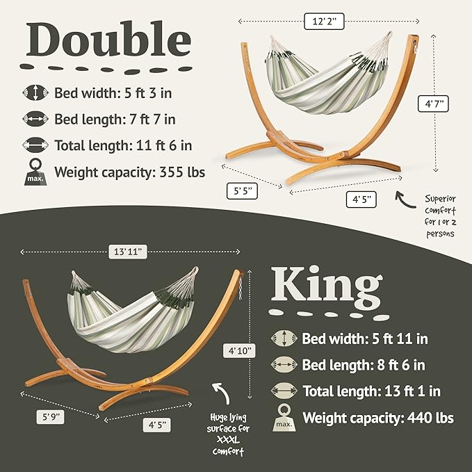 - ECO-FRIENDLY, STURDY LARCH STAND: Elevate your space with a natural design using our robust larch wood hammock stand. Perfect for both indoor and outdoor use, its patented QuickExtend system allows effortless height adjustments, providing the ideal lounging experience.