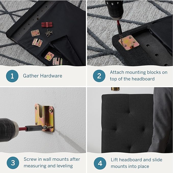 - EASY ASSEMBLY - Less than 5 minutes. Uncover back panel for predrilled legs, modification plates, wall mounts for a floating headboard, and hardware. Secure both legs to the headboard for Twin size bed, and attach to bedframe, or mount to the wall