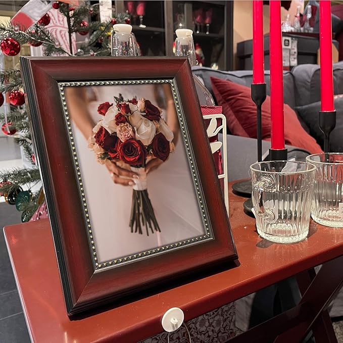 - 【Great gift】Elegant mahogany/white with gold beaded design suitable for Wedding, Anniversary, Birthday, Family, Baby, Furry friends, Travel, Awards, Certificates. For coming festivals, you can choose this frame as Christmas and New Year gift for your loves.