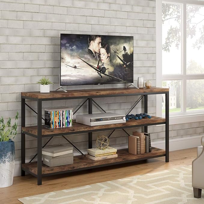 Tribesigns 55 Inches Long Sofa Table with Storage Shelves, 3 Tiers Industrial Rustic Console Table with Open Shelves, Three Decorative Shelf, Open TV Shelf for Living Room, Hallway, Book