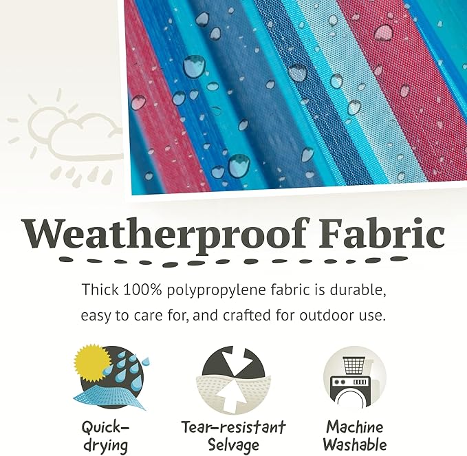 - Durable Comfort: Sturdy 100% polypropylene fabric, weather-resistant, with high count suspension cords.