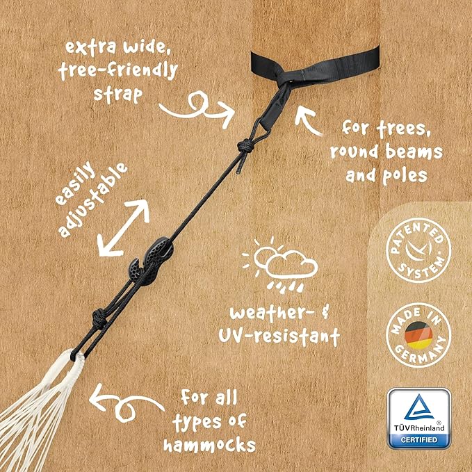 - Tree-Friendly Suspension Kit: Extra-wide straps and patented SmartHook for easy length adjustment. Ideal for outdoor hammock relaxation.