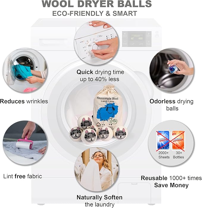 - ✅ WRINKLE, LINT & STATIC REDUCTION – Naturally softens clothes, reduces static cling and lint, and helps prevent wrinkles – without using dryer sheets.