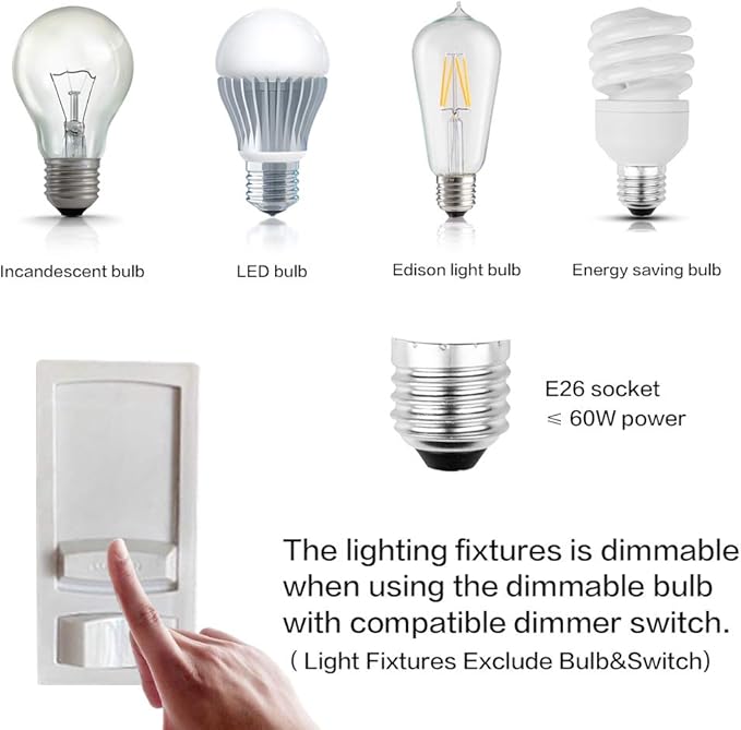 - 2.【BROAD ADAPTABILITY】Compatible with Incandescent, LED, CFL, and Halogen Bulbs(Bulbs exclude in package,maximum 60 watts for each light socket). Perfect fit in retro-vintage or modern styles decorates.
