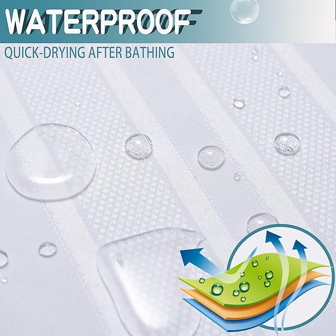 - LONG LIFE : The shower curtain is Quick Dry, long service life, water resistant, baby attachable, luxury and elegant pattern applicable to hotel and home bathroom decor.