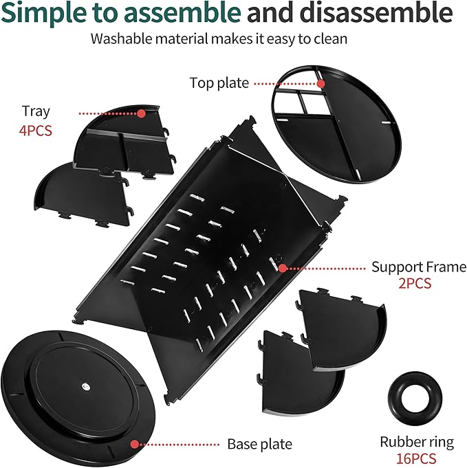 360 Rotating Makeup Organizer,DIY Adjustable Spinning Holder,Foldable Cosmetic Storage Display box,Large Capacity Make up Caddy Shelf,Fits Countertop Vanity and Bathroom (BLACK)