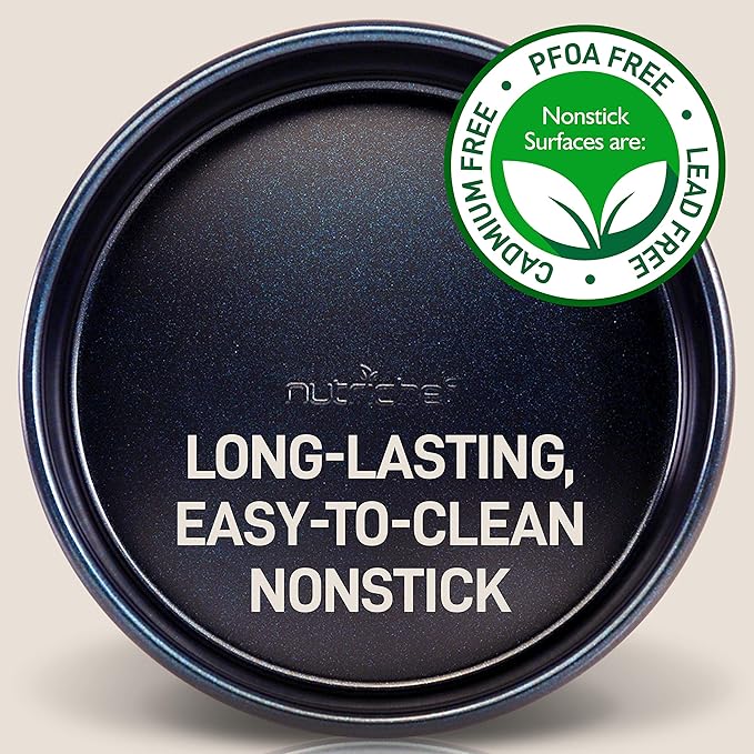 Non-Stick Kitchen Oven Baking Pans - Carbon Steel with Non-stick Blue Diamond Coating Inside & Outside, Commercial Grade Restaurant Quality Metal Bakeware, Dishwasher Safe - NutriChef NCBK6TRB