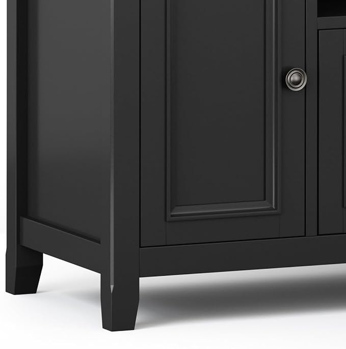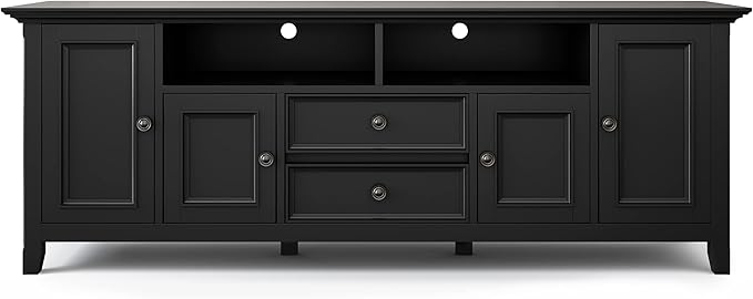 SIMPLIHOME Amherst 72-inch Wide Solid Wood TV Stand in Black, Transitional-Style Media Console for Living Room with Cable Management and Adjustable Shelves, Fits 80" TVs
