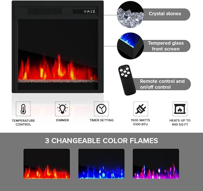 - Special Feature : Adjustable Flame, Multicolor Flame, Timer, Tv Stand
