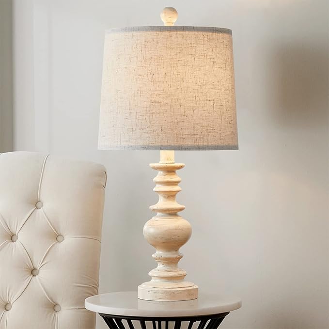 - Retro-Style Design: Antique white resin base and body,with retro-style stripes,make this table lamp present an elegant style. It can be used as a decoration and perfectly matches your furniture. (Note: The lampshade needs to be assembled)