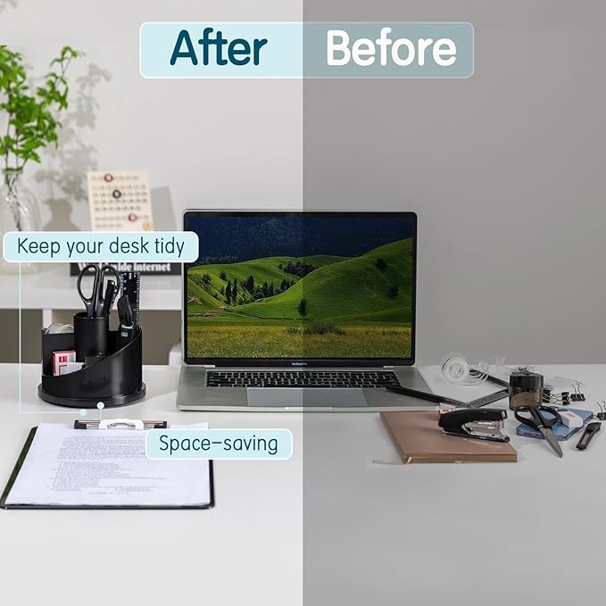 - MULTIPURPOSE DESKTOP ORGANIZER - The spinning organizer is designed to keep your stationery well organized, so that you can easily arrange various sizes of office supplies.