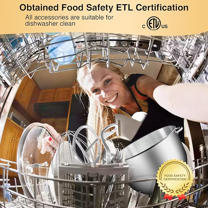 - Special Feature : Low noise, 360° planetary mixing, Vibration absorption design, No displacement during operation, Strong suction cups for more steady, Over-Heating and overload protection, Dishwasher safe, ETL certificate, Adjustable speed control, Tilt head, Mixers, Smart chip controlled, Fully automatic electric stand mixer, 660W powerful high performance pure copper motor, 6.5Qt stainless steel bowl with 2 handle, 6+p speeds rotary knob with pulse function, Full metal gears + ball bearing + belt structure, LED light as power indicator Low noise, 360° planetary mixing, Vibration absorption design, No displacement during operation, Strong suction cups for more steady, Over-Heating and overload protecti… See more