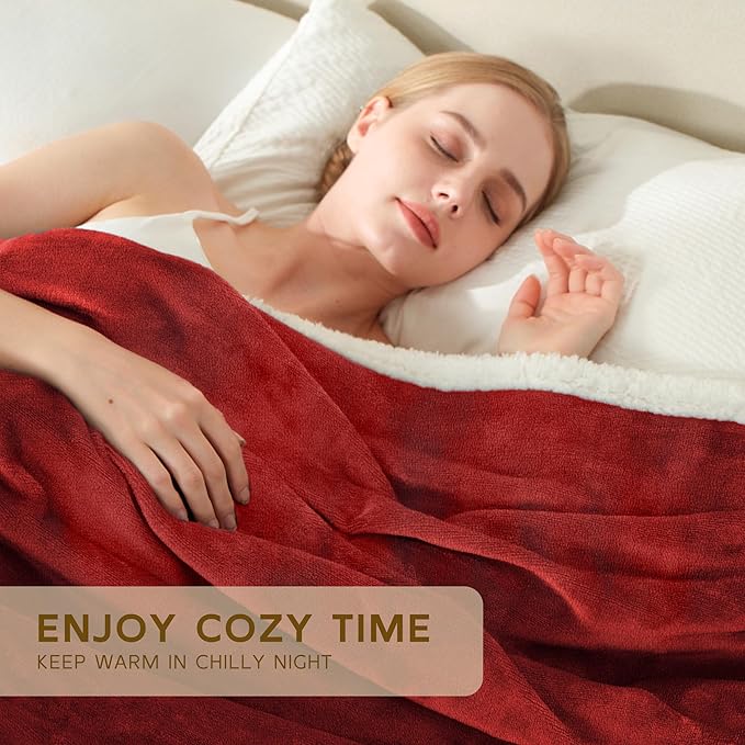 BEAUTEX Sherpa Fleece Throw Blankets, Soft Fluffy Flannel Plush Blanket and Throw, Fuzzy Cozy Red Cuddle Blankets for Couch Bed Sofa Adults (50" x 60", Wine)