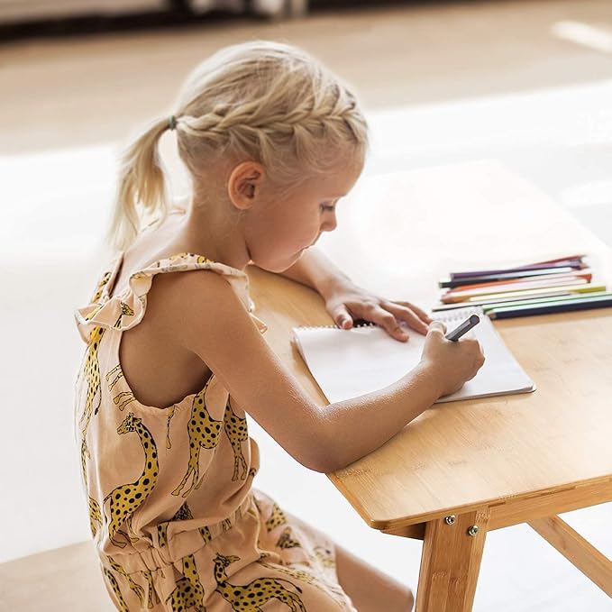- 【Eco-friendly Study Desk】: Selected quality bamboo; Crafted in detail. There will be a smooth surface. Easy to clean. Sturdy and durable. A crossbar between two legs is more stable