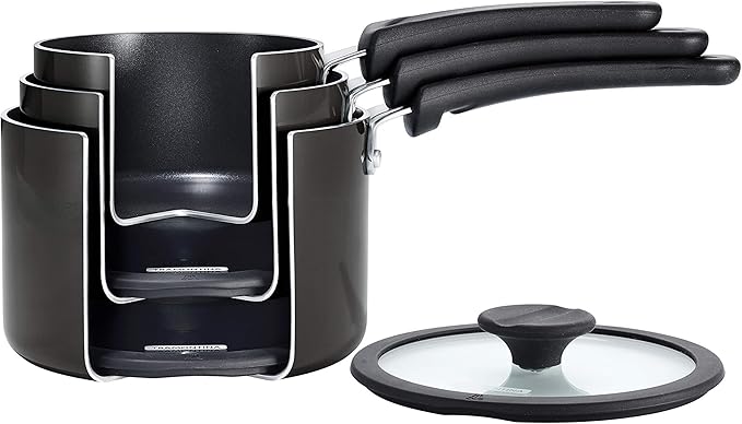 - Complete 6-Piece Set: Includes 1.25-quart, 2-quart, and 3-quart covered saucepans for versatile cooking