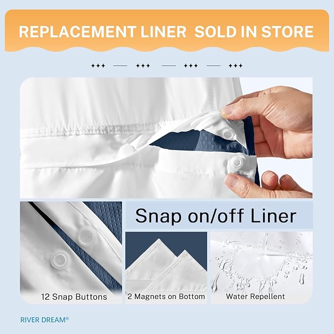 - Package Included: 1 Shower curtain and 1 fabric snap-on replacement Liner
