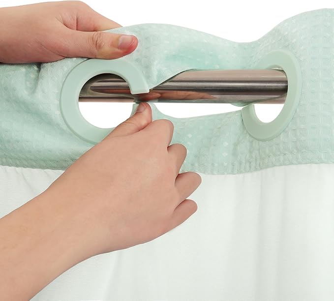 River Dream Heavyweight No Hooks Required Dotted Waffle Weave Shower Curtain with Snap in Liner - 71W x 74H,Hotel Grade,Spa Like Bath Curtain,Misty Blue
