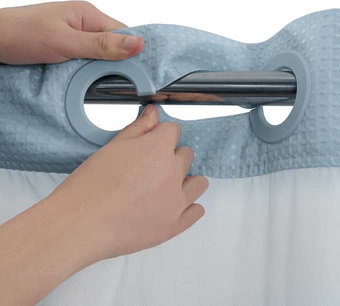 - Hotel Quality: The shower curtain and liner are made with high quality Fabric, heavy weight to keep it in place. Water repellent treatment can repel the water inside tub