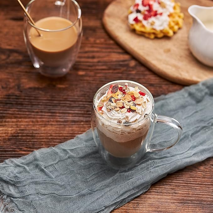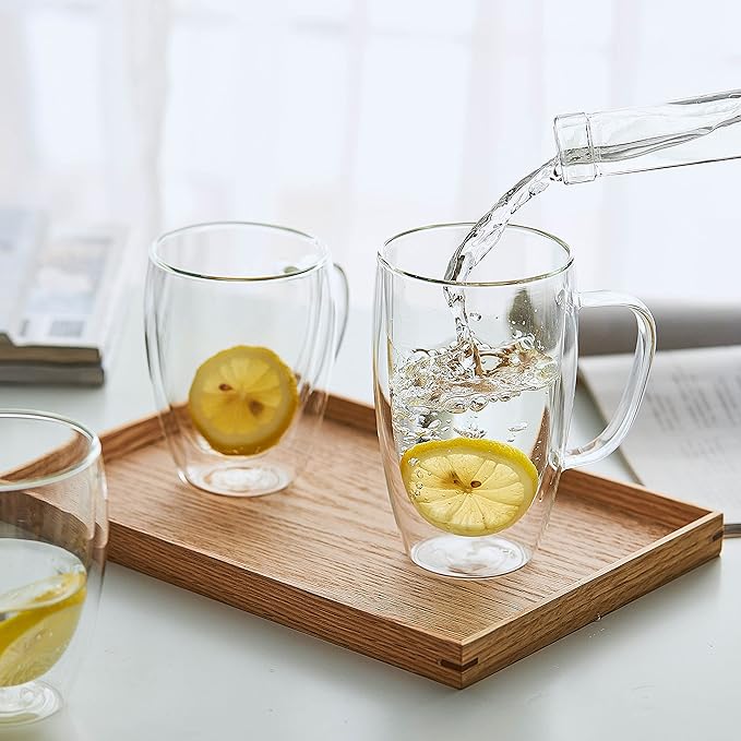 MEWAY 16oz/4 pack Coffee Mugs,Thickened Clear Glass Double Wall Cup with handle for Coffee, Tea, Latte, Cappuccino (16 oz,4)