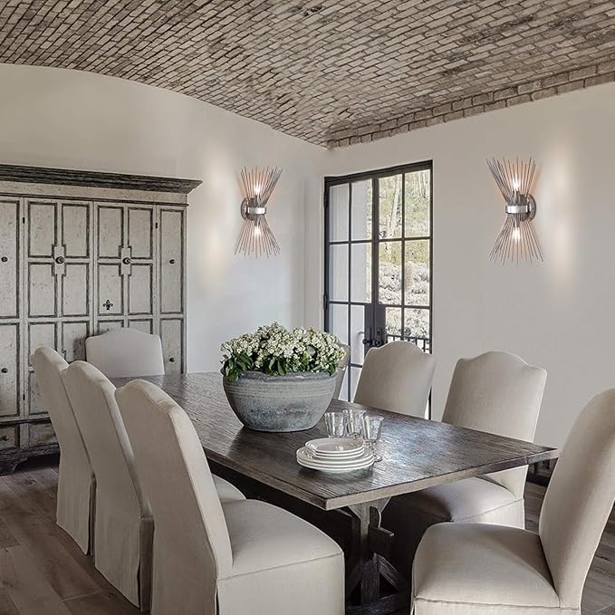 EDISLIVE 2-Bulb Vanity Light Mid-Century Modern Starburst Wall Sconce Lamp Sunburst Sconce Wall Light for Powder Room Bedroom Bathroom