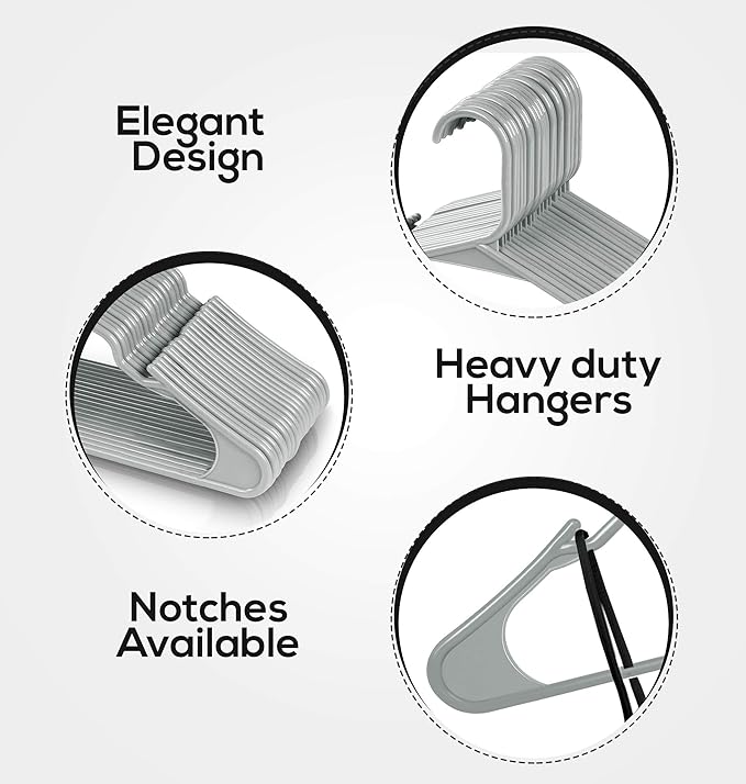 Utopia Home Plastic Hangers 50 Pack - Perfect Space Saving Clothes Hanger - Durable and Strong - Perfect Closet Organizers with Shoulder Grooves (Grey)