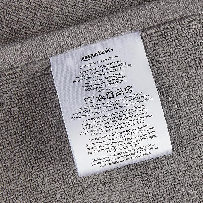 Amazon Basics Banded Bathroom Bath Rug Mat, Powder Gray, 31 inches L x 20 inches W