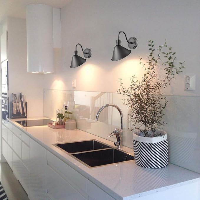 DIRYZON Industrial Gooseneck Wall Sconces Antique Black Barn Light for Kitchen Sink Patio Porch Set of 2