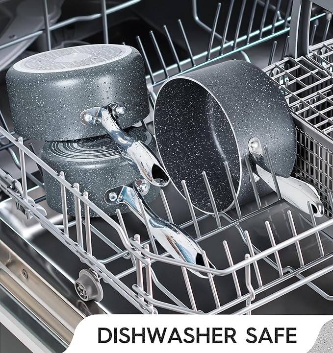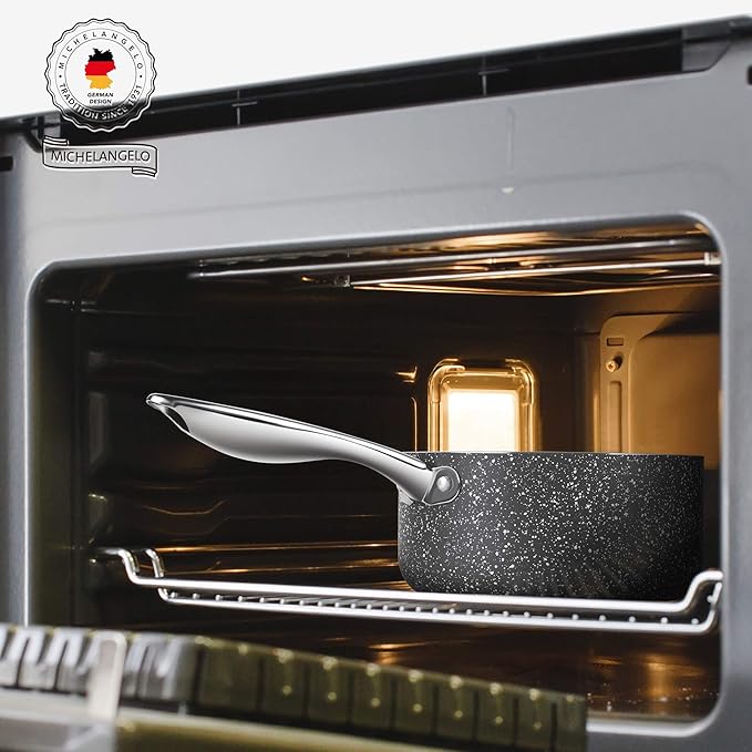 - 【Eco-friendly Non-Stick Granite Coating & Easy to Clean 】- Natural Stone material is ideal for healthy cooking. Choose Michelangelo Stone Small Sauce Pan for greener and safer cooking.100% APEO & PFOA-Free.