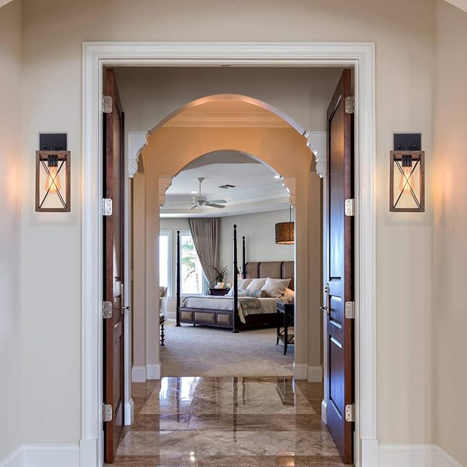 VILUXY Wood Wall Sconces Retro Industrial Rectangle Bedside Wall Sconce Plug-in Cord with Switch Lighting Fixture Black Wall Lamp for Bedroom, Hallway, Entryway, Passway, Dining Room 2 Pack