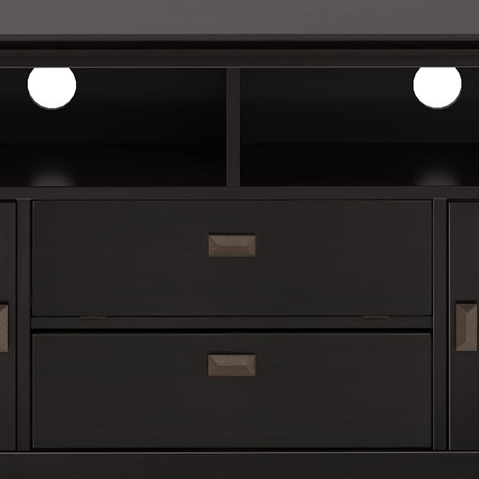 SIMPLIHOME Artisan SOLID WOOD 72 Inch Wide Transitional TV Media Stand in Hickory Brown for TVs up to 80 Inches, For the Living Room and Entertainment Center