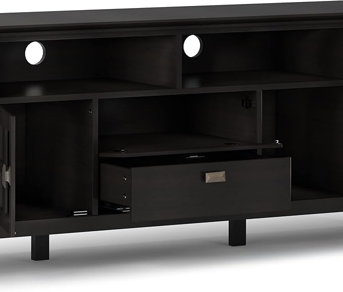 - Extra wide TV Stand is perfect for TVs up to 80 inches includes cord management cut-outs for easy installation of TV and media components