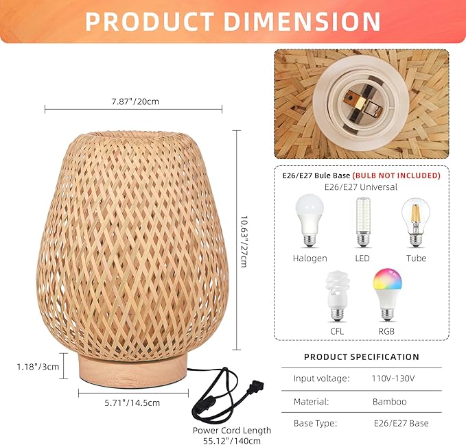 - 100% SATISFACTION GUARANTEE: We conduct strict quality control on every bamboo table lamp cord which have UL certification. 12-month warranty for quality problem. Please feel free to buy!