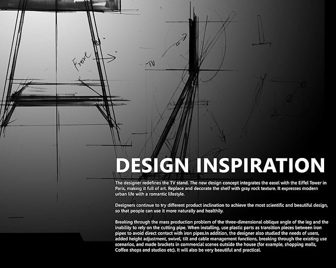 - Eiffel trapezoidal design: This Eiffel Series TV stand is created for science and art. As a modern TV stand, trapezoidal design makes the whole corner TV stand more wonderful! Two sturdy rear frames and thick wooden storage shelf provide superior balance and support, and the assembled finished product looks more than a floor TV stand, but an art craft.