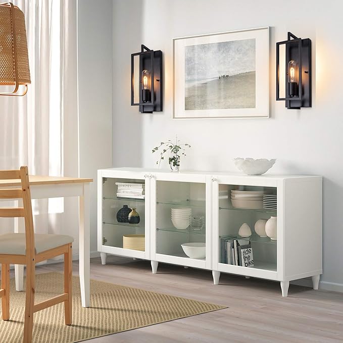 - Vintage & Modern Design: 2-pack industrial wall sconces feature a fixed wall-mounted design with a metal body in a matte black finish for a glam, minimalist look. The indoor wall sconce with geometric shade diffuses a cozy glow for an inviting feel and offers a modern & vintage style while complementing your home decor.