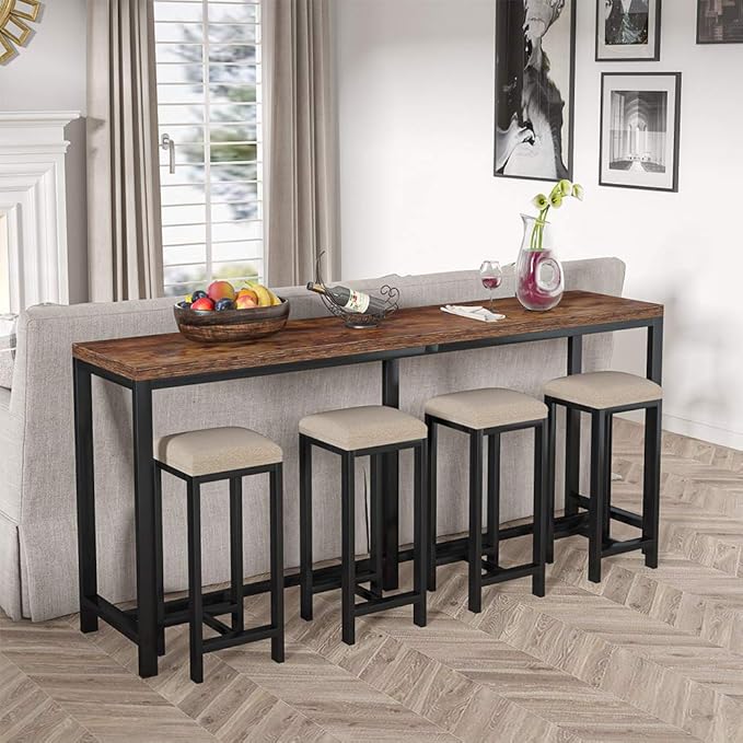 - ✔【Rustic Sofa Console Table】:This retro style long skinny sofa table would compliment your furniture and bring function to your living area without taking up space. It can go anywhere you wanted---behind the sofa/couch, entrance, foyer, an empty hall. Or you can place it against to the wall as a pub table