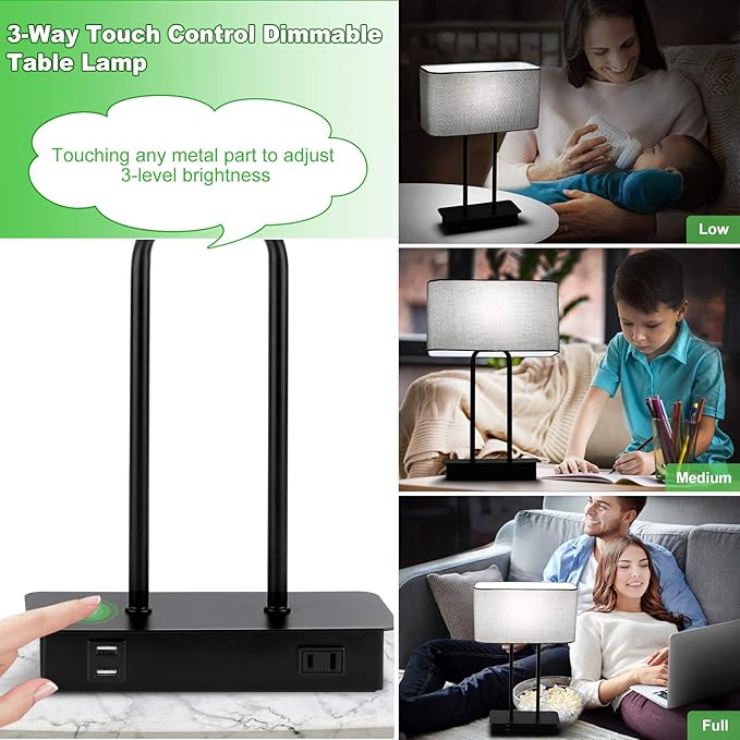 - 3 Level Brightness Touch Control Table Lamp: This modern bedside lamp has 3 different brightness options (low, medium and high) to meet your various demands at different times or occasions. Upgraded touch control feature makes it exactly convenient to turn on/off and adjust to your favorite brightness level, just tapping any metal part of the sturdy base, stems or even the finial on the socket, greatly handy to operate, no more minding switch lost or broken.