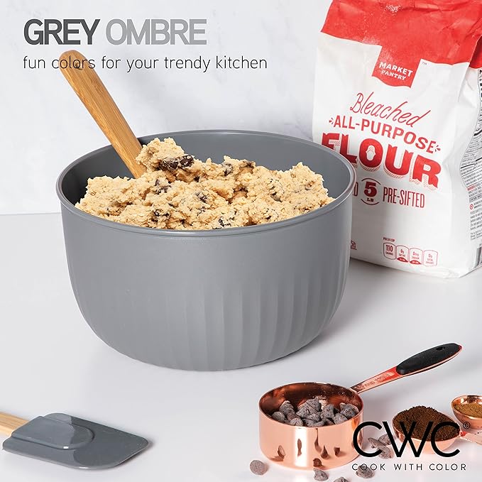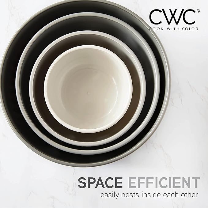 - Cook with Color 4 piece plastic mixing bowl set - non slip bowls with lids; easy to clean, sturdy mixing bowls.