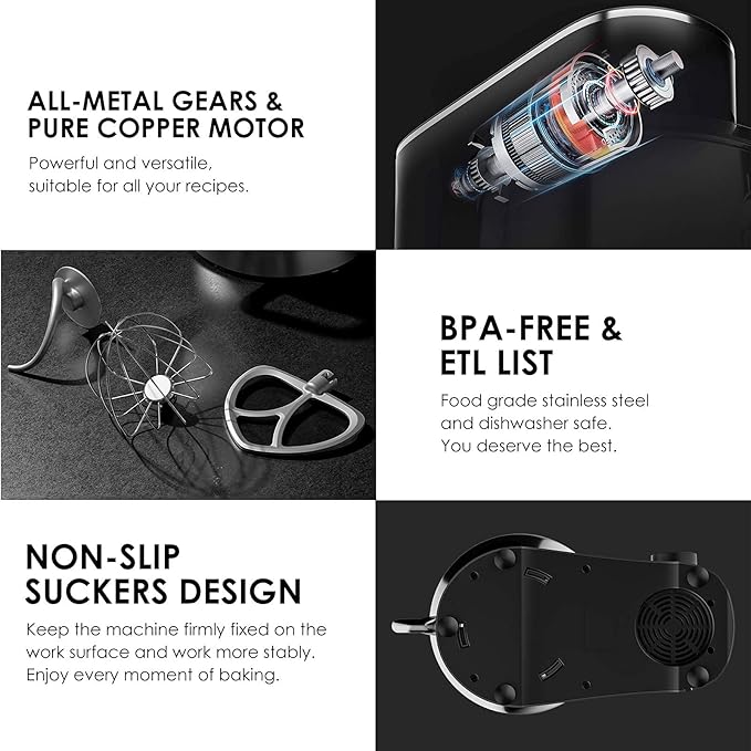 - STYLE AND RELIABILITY - This electric food mixer practices a combination of classical and popular. The best ornament in your kitchen you shouldn't miss. All of the attachments are dishwasher-safe for quick and easy cleaning. Just throw them in the dishwasher, and you're all set