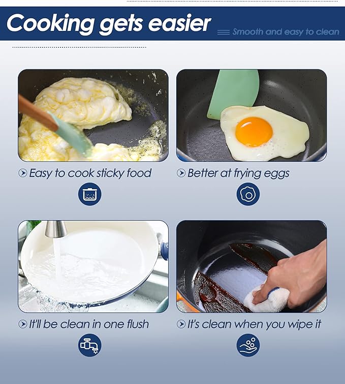 - 🍝High Quality Cast Iron and Enamel--Made of thick, heavy-duty cast iron with a glossy enamel, whether it is heated at high temperature or constantly stir-fried, it is not easy to damage the pot