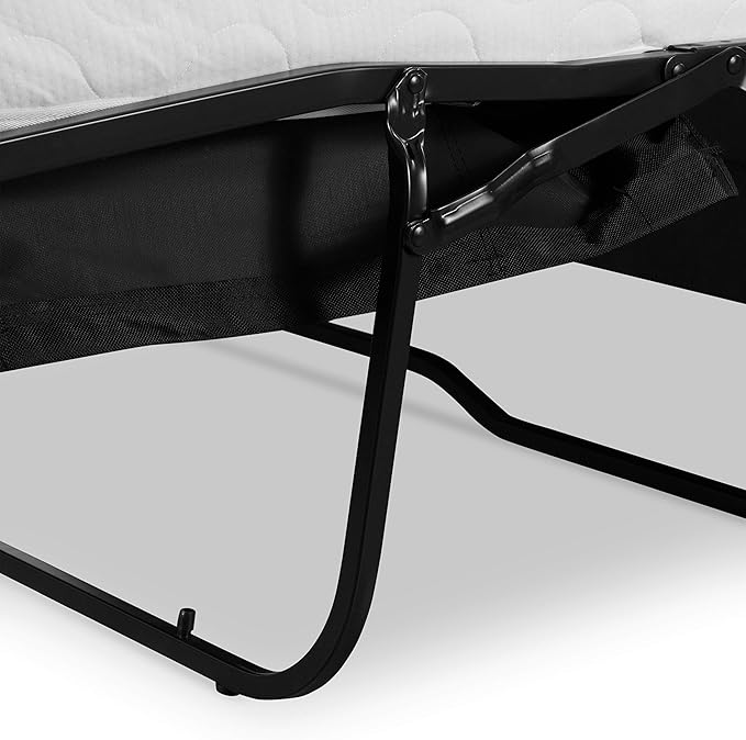 - 5” thick, Tri-layered mattress features: Cushioning fiberfill top layer, Memory foam layer, Dense polyurethane foam layer, Simple assembly required (approximately 5 minutes).