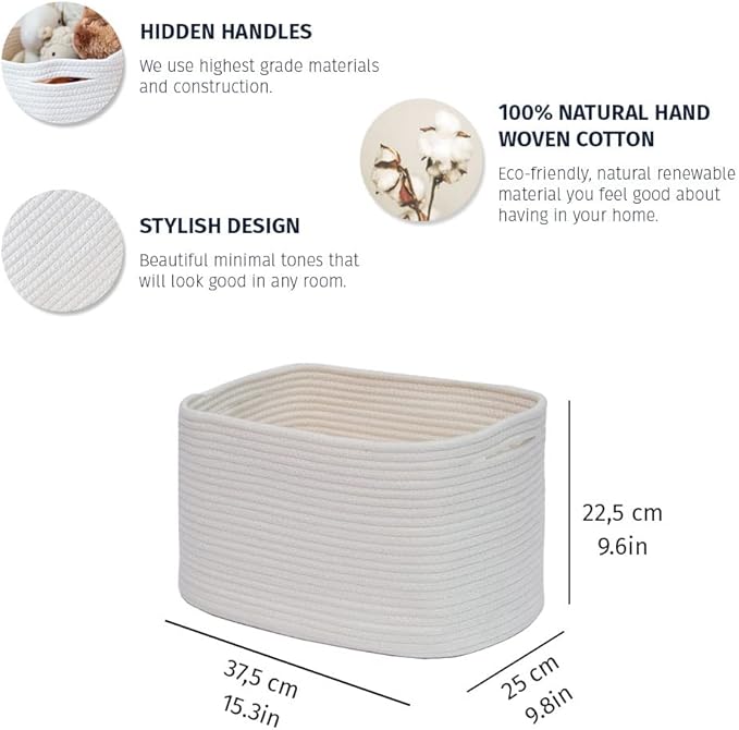 - Elegant Cotton Coiled Rope Cubes Design – A vintage feel with a modern touch these coiled rope baskets are made from tightly-woven cotton that’s strong, and more durable and resistant than regular wicker storage basket, linen closet organizers and storage baskets with lid.