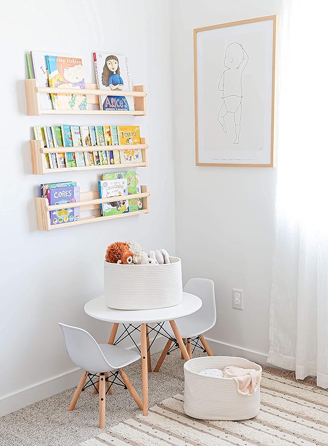- Discrete, Built-In Carry Handles – These fabric rope baskets for storage also feature slim hand holds built right into the sides of each round basket for a seamless look that’s also functional. Perfect for picking up toys or carrying items around the house.