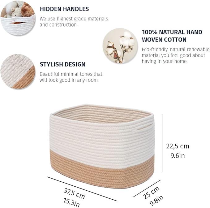 - Elegant Cotton Coiled Rope Cubes Design – A vintage feel with a modern touch these coiled rope baskets are made from tightly-woven cotton that’s strong, and more durable and resistant than regular wicker storage basket, linen closet organizers and storage baskets with lid.