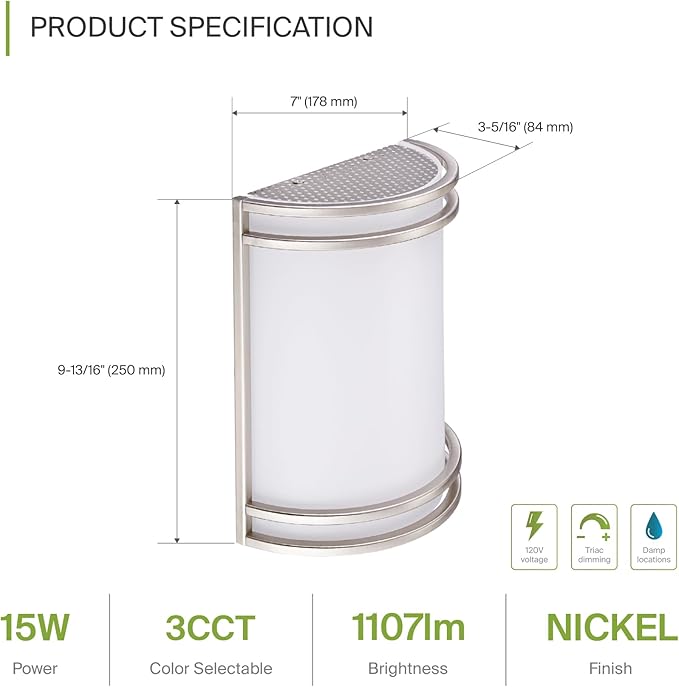 - COLOR SELECTABLE: Choose among 3000K Warm White, 4000K Cool White, or 5000K Daylight color temperatures with a simple switch. The interior wall light fixture is designed to operate on 120V circuits.
