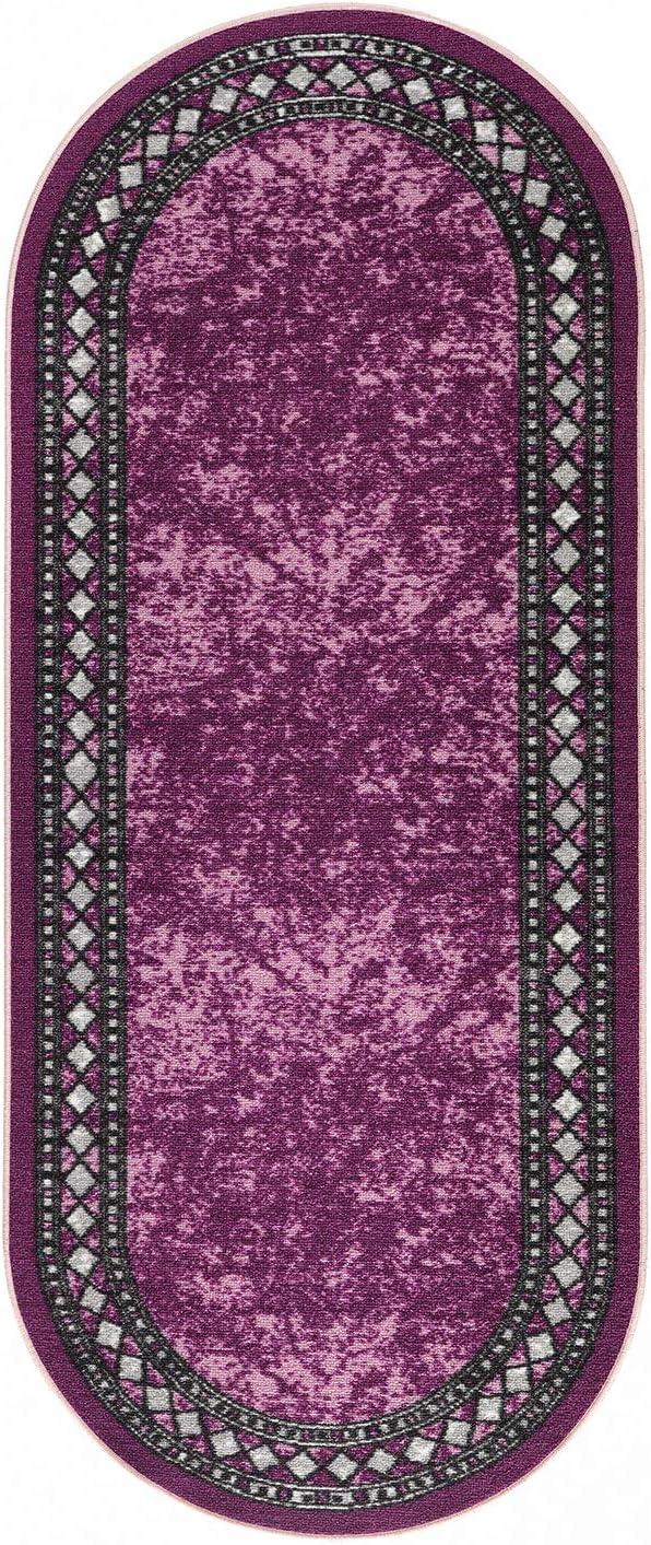 Antep Rugs Alfombras Modern Bordered 2x5 Non-Skid (Non-Slip) Low Profile Pile Rubber Backing Kitchen Area Rugs (Purple, 2' x 5' Oval)