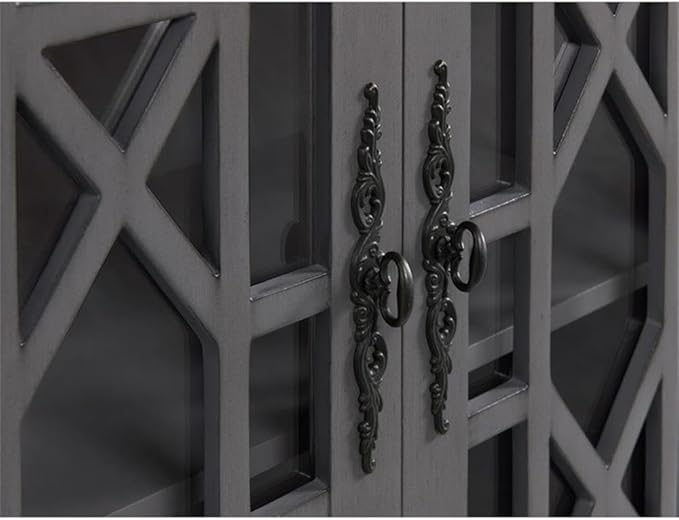 - GLAMOROUS TEMPERED GLASS - Two cabinets with elegant lattice glass doors showcase your treasures while keeping them organized.